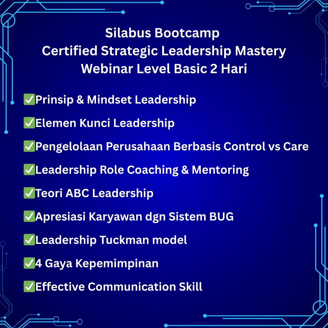 - Meningkatkan Kemampuan Motivasi Tim: Anda akan mempelajari teknik-teknik untuk memotivasi anggota tim, meningkatkan semangat kerja, dan mencapai hasil yg optimal.