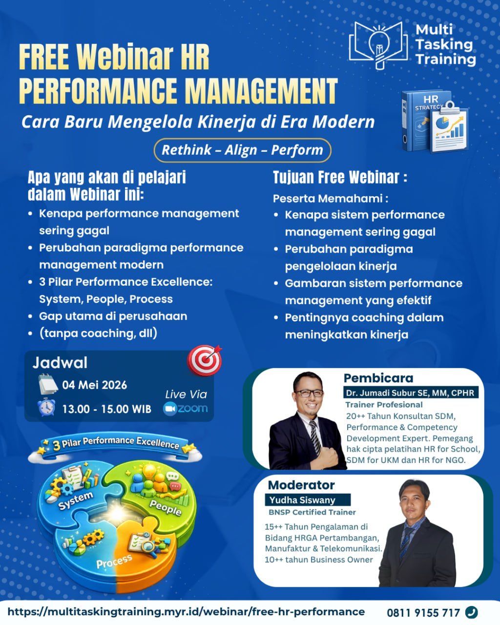 Multitasking Training menyelenggarakan FREE WEBINAR “Why Performance Management Fails: Cara Baru Mengelola Kinerja di Era Modern”