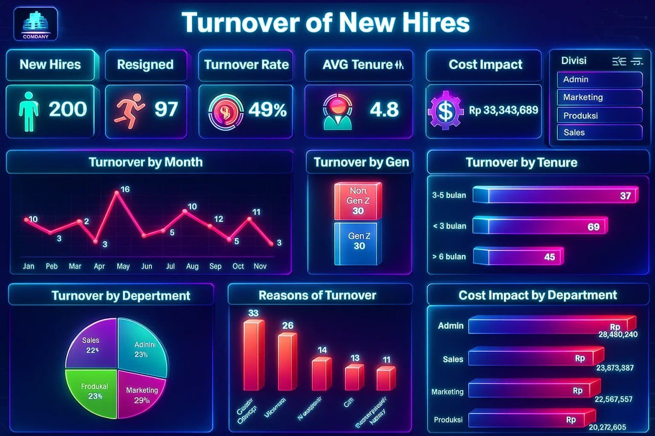 - End to End Project - Praktik analisis retensi karyawan baru dari insight menjadi dashboard