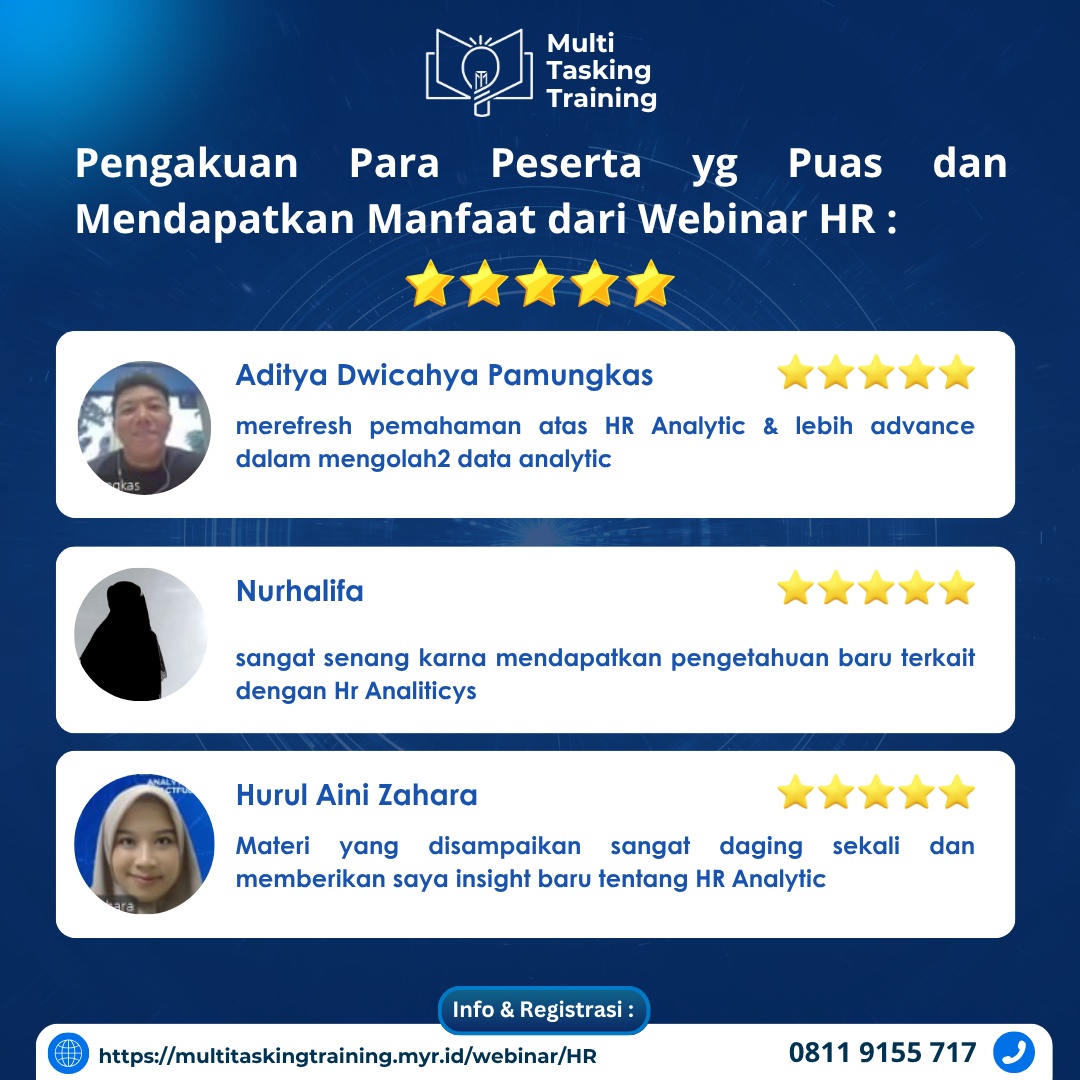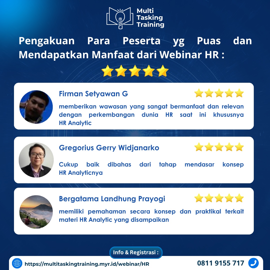Webinar ini dipandu oleh praktisi HR Analytics berpengalaman, dengan materi yg sudah teruji