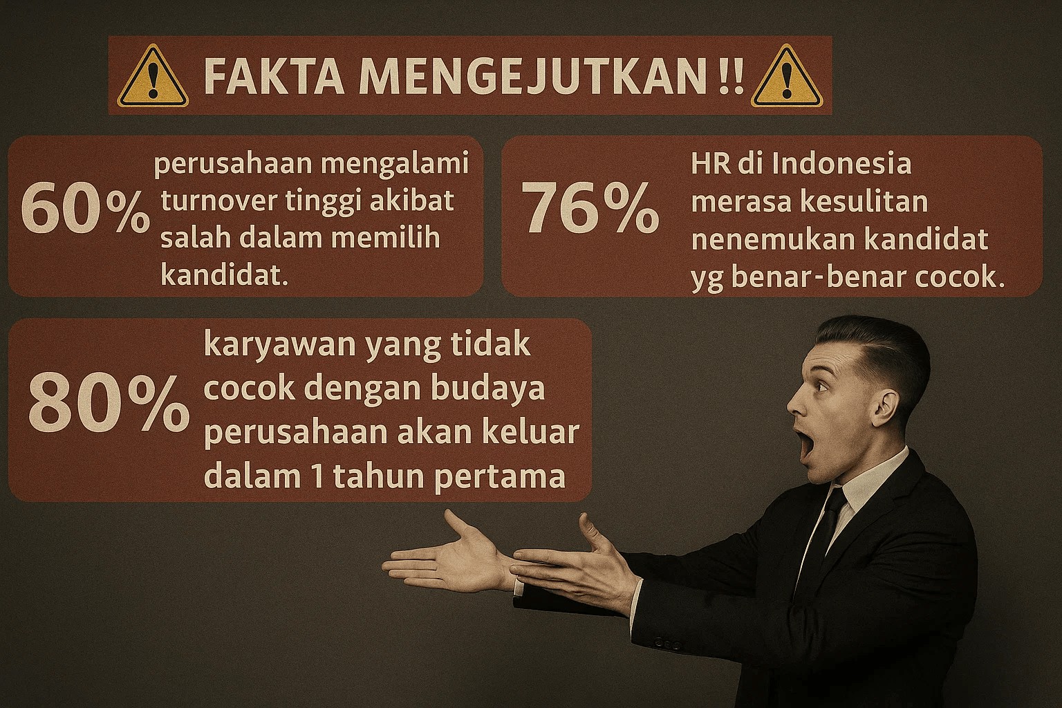 β Minimnya Alat/Tools & Metode Recruitment yang Tepat β Kesulitan memahami karakter kandidat karena hanya mengandalkan feeling & Saat wawancara bingung mo tanya apa sehingga hasilnya
