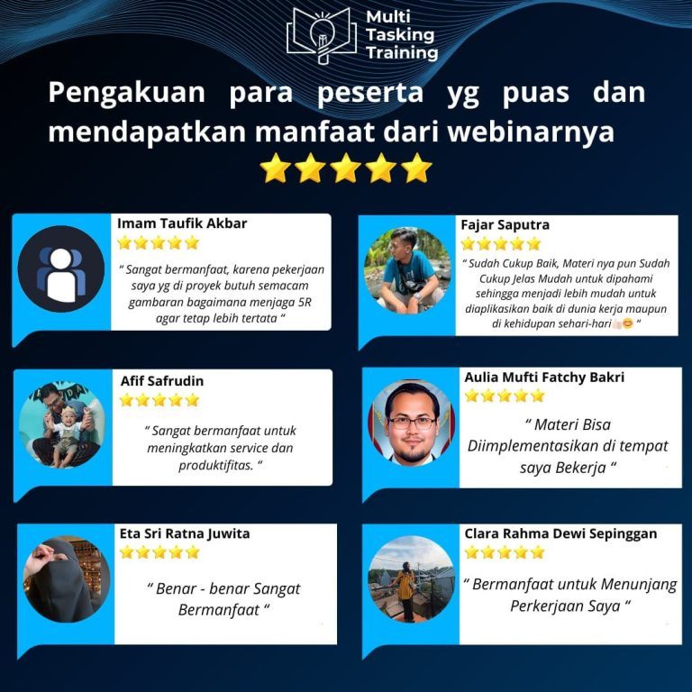 Multitasking Training menawarkan solusi jitunya, yaitu Webinar Certified Mastery Kaizen 5S/5R Terdigitalisasi GAIS dimana Anda Akan Belajar, Diskusi & mendapatkan studi kasus dengan Lebih Jelas sehingga :