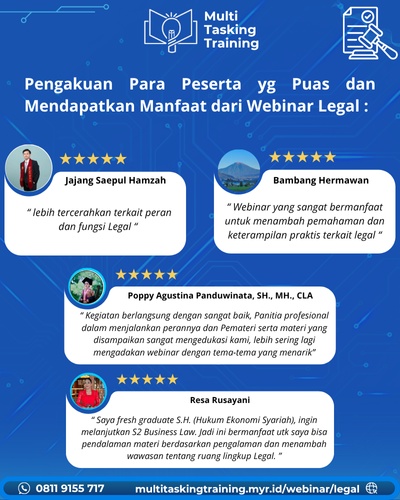 - Peningkatan Karier: Tingkatkan skill & Pengetahuan Anda untuk menjadi kandidat yg lebih kompeten di bidang hukum perusahaan.